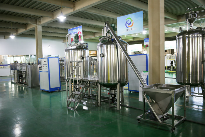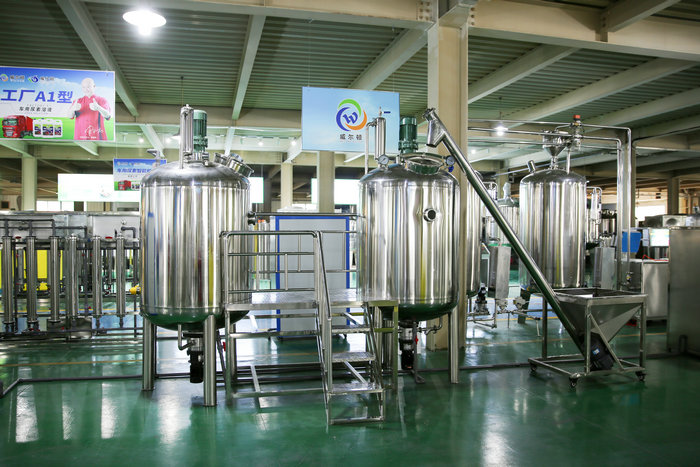 采用流水生產(chǎn)線,從吹瓶到原料調(diào)配,自動(dòng)灌裝,包裝直至出成品,一氣呵成。 設(shè)備從大型,中型,小型,設(shè)備齊全,滿足不同客戶的辦廠需求.
